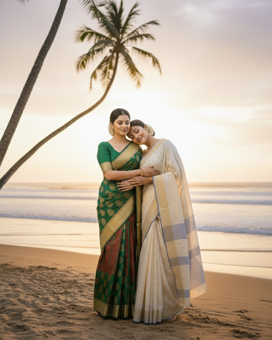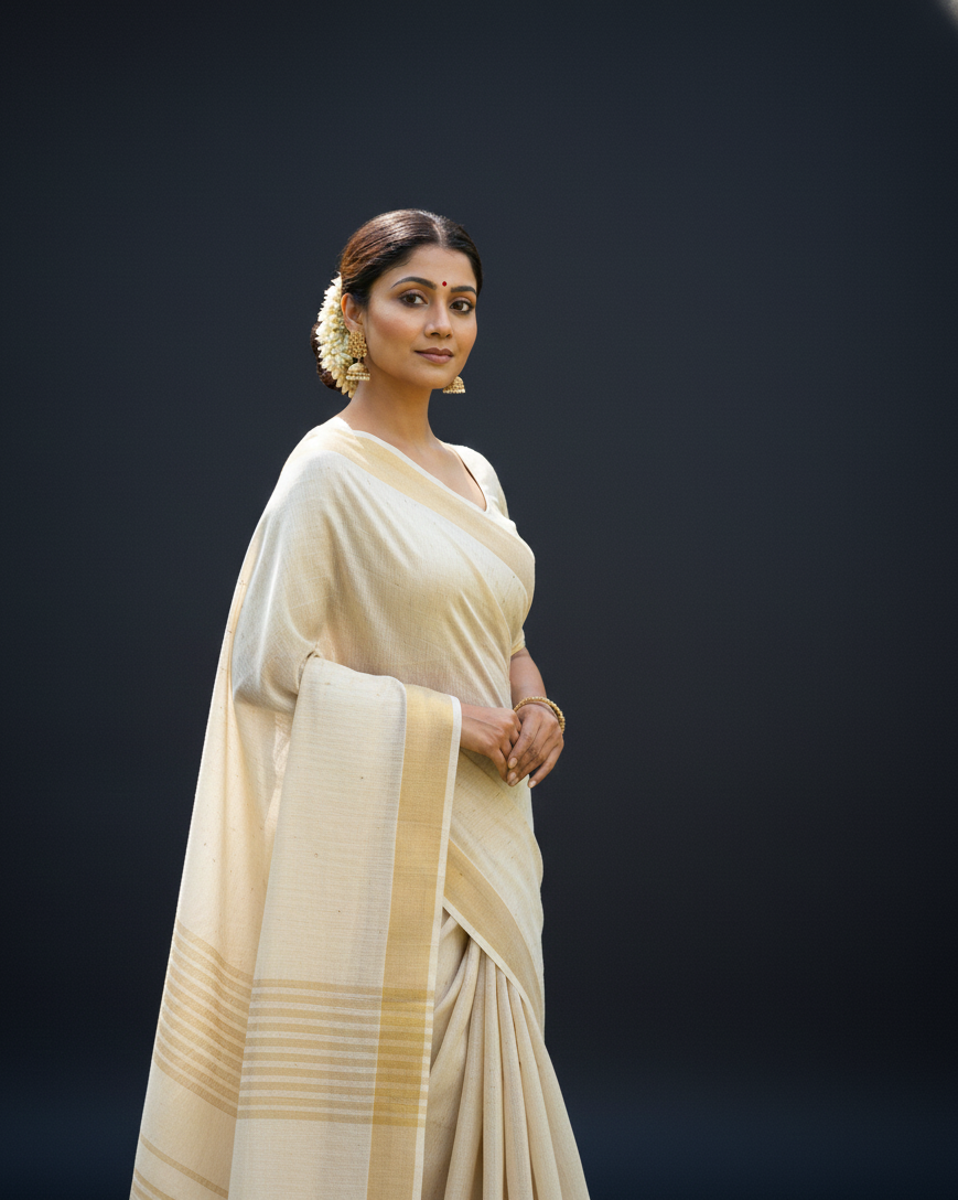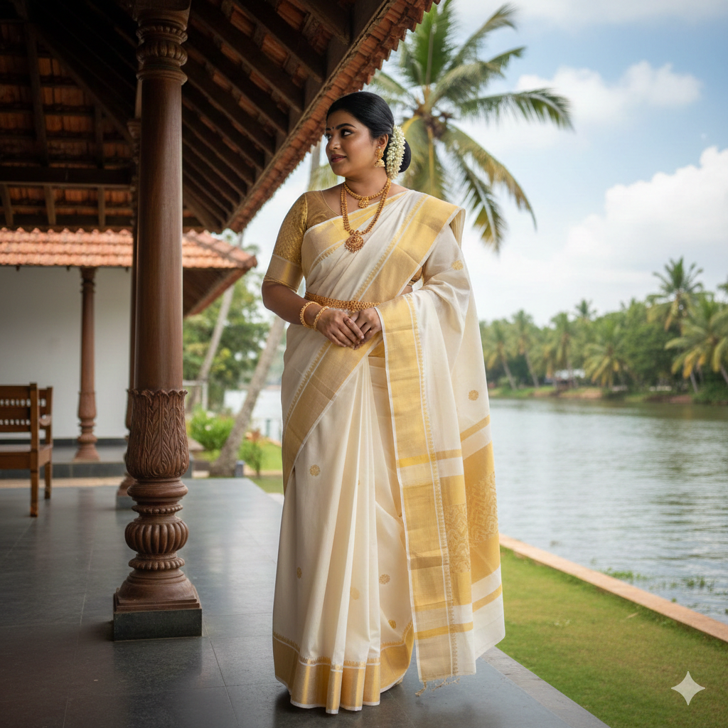 "I’ve always been skeptical about ordering traditional handlooms online, but the Kerala Sett Saree I received is absolutely stunning. The cotton is incredibly soft, and the gold tissue border has a subtle, premium glow that looks so elegant. It’s rare to find such authentic quality delivered right to your doorstep. I’m already eyeing a Bengal Jamdani for my next purchase!"
