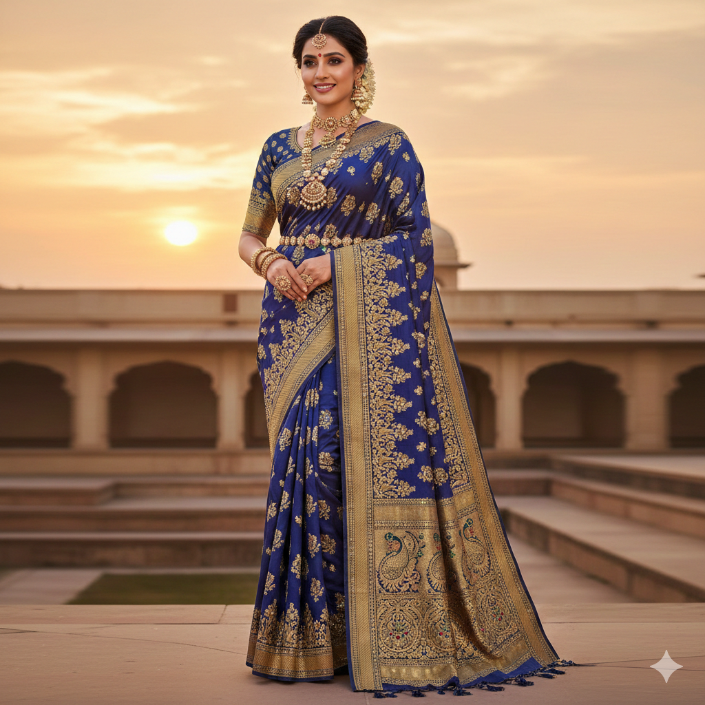Discover an exquisite curation of India's finest handlooms and luxury fabrics, celebrating the rich artistry and cultural legacy of traditional weaving.